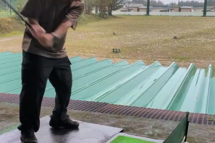 スチールシャフトに戻すとしっくりきたので、その方が自分には合うのかもと勝手に納得して、またしばらく打っていると、2カゴ分を打ち終わる頃には、腕が…あがらないw